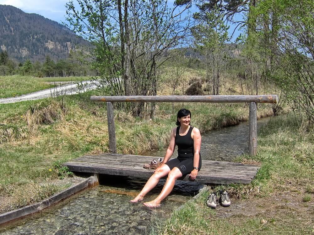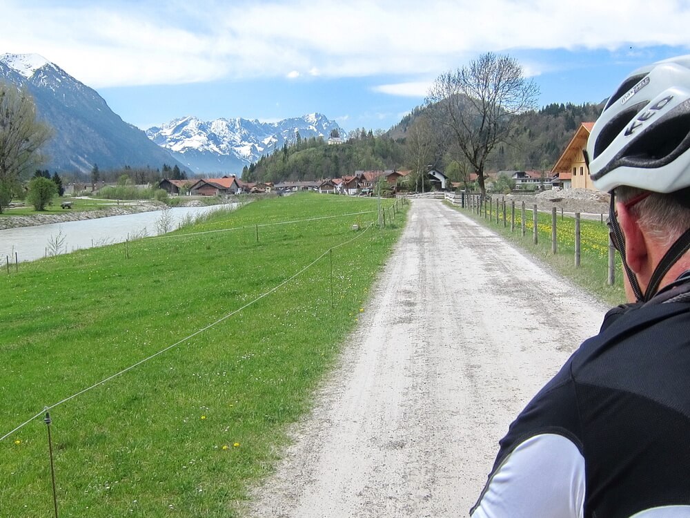 Der Rest der Etappe ist wiederum ein Traum. Sanft zieht sich der Schotterweg an der Loisach entlang, umrahmt von den ersten hohen Bergen der Alpen. Ab Garmisch-Partenkirchen ist die Strecke quasi identisch mit der ersten Etappe meiner Albrecht-Route. Darüber brauche ich wohl nicht mehr viel zu schreiben, tausendfach ist sie schon nachgefahren worden. Ein Traum für mich, dass ich die Route nun das erste Mal mit meiner Frau zusammen fahren kann – ohne Stress, ohne Hektik, einfach nur genießen. Sanft schlängelt sich der Radweg entlang der Loisach. Die mächtige Zugspitze steht im gleißenden Sonnenlicht.