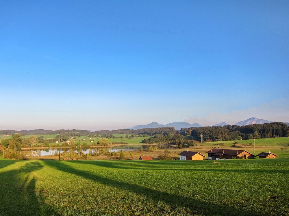 In Hochstimmung machen wir uns nach dem ordentlichen Frühstück auf den Weg. Das Wetter ist weiter sehr ordentlich, die Sonne scheint vom Himmel. Die schneebedeckten Alpen grüßen aus der Ferne. Von Antdorf geht es über Habach und an der Höhlmühle vorbei in Richtung Murnau. Das geschieht auf einer kleinen, kaum befahrenen Nebenstraße. Nach einer flotten Abfahrt passieren wir den Froschhauser See. Das ist sozusagen der kleine Bruder vom Riegsee. Dieser kleine Moorsee ist nur durch eine Straße vom Riegsee getrennt. Im Sommer lädt er zu einer Baderast ein.