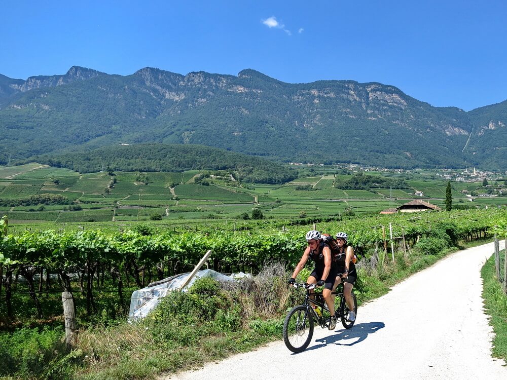 Aus Meran heraus geht es topfeben in Richtung Bozen. Auch hier ist das letzte fehlende Teilstück des Radwegs zwischen Sinich und Bahnhof Burgstall fertig gestellt. Bei Sigmundskron fahren wir über die Etschbrücke und wechseln auf den Radweg in Richtung Kaltern. Auf dem Hügel über uns thront Schloss Sigmundskron. Dort befindet sich ein Messner Mountain Museum. Das Schloss beherbergt einen der gegenwärtig fünf Standorte des Museumsprojektes von Reinhold Messner, des wohl bekanntesten derzeit lebenden Südtirolers.