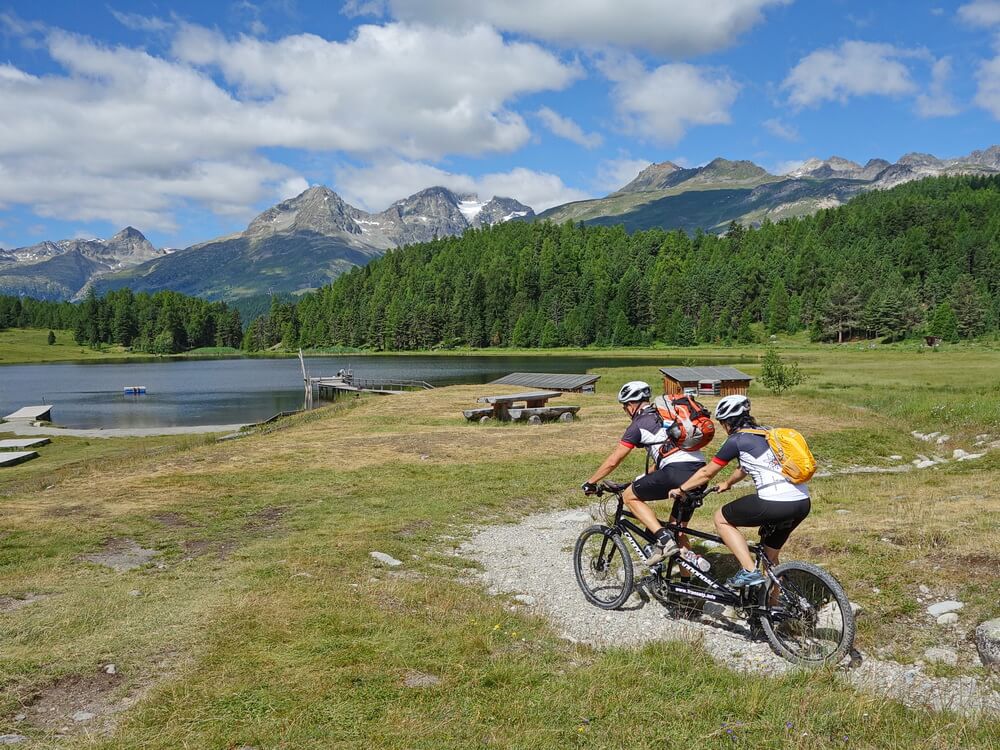 Diese Transalp verbindet mit St. Moritz und Venedig zwei Traumziele auf einer Route, die Andreas Albrecht nach dem Motto seiner Easy-Transalps ausgetüftelt hat. Das sind landschaftlich schöne, aber fahrtechnisch leichte Routen über die Alpen, die er gemeinsam mit seiner Frau auf einem Mountainbike-Tandem befährt. Wobei bei dieser Strecke auch interessante Trails vorhanden sind, zum Beispiel im Schweizer Münstertal oder bei der Abfahrt vom Mendelpass ins Nonstal.
