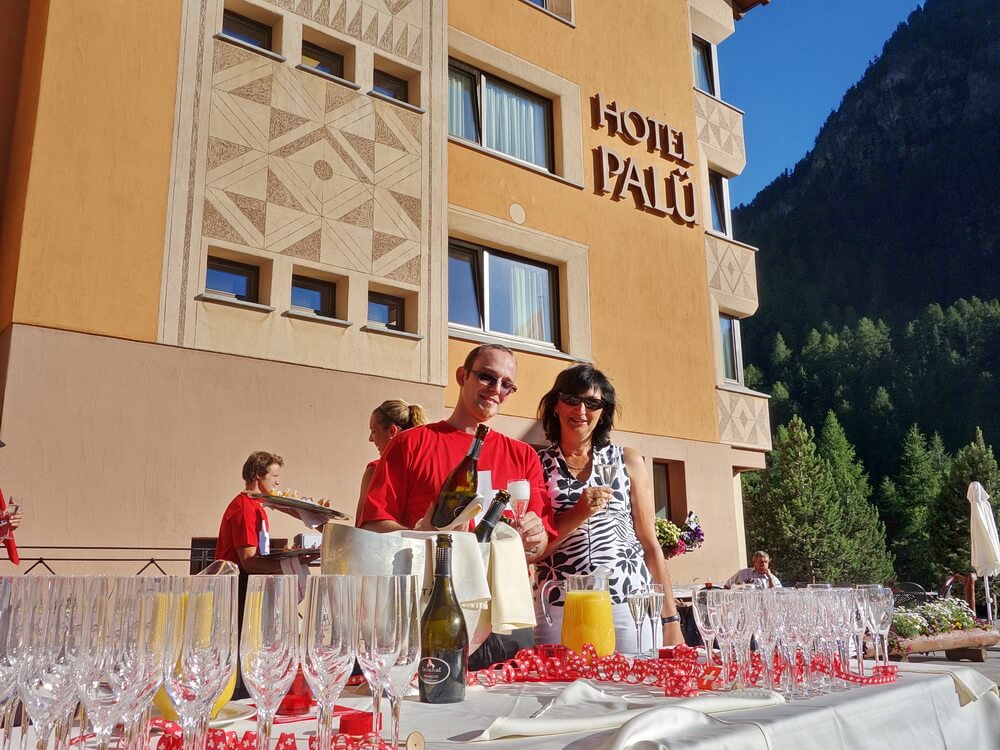 Eine wichtige Rolle spielte bei meinen Planungen der Aspekt, den logistischen Aufwand in Grenzen zu halten, egal ob man mit dem Auto oder mit der Bahn anreist. Sowohl St. Moritz als auch Venedig sind mit der Bahn gut zu erreichen. Durch meine Tourrecherchen in Alta Rezia bin ich auf Pontresina als Anreiseort gestoßen. Wir haben zum Auftakt zwei Nächte im Hotel Palü gebucht und sind als Prolog die schöne kleine Strecke über den Stazer See nach St. Moritz gefahren.