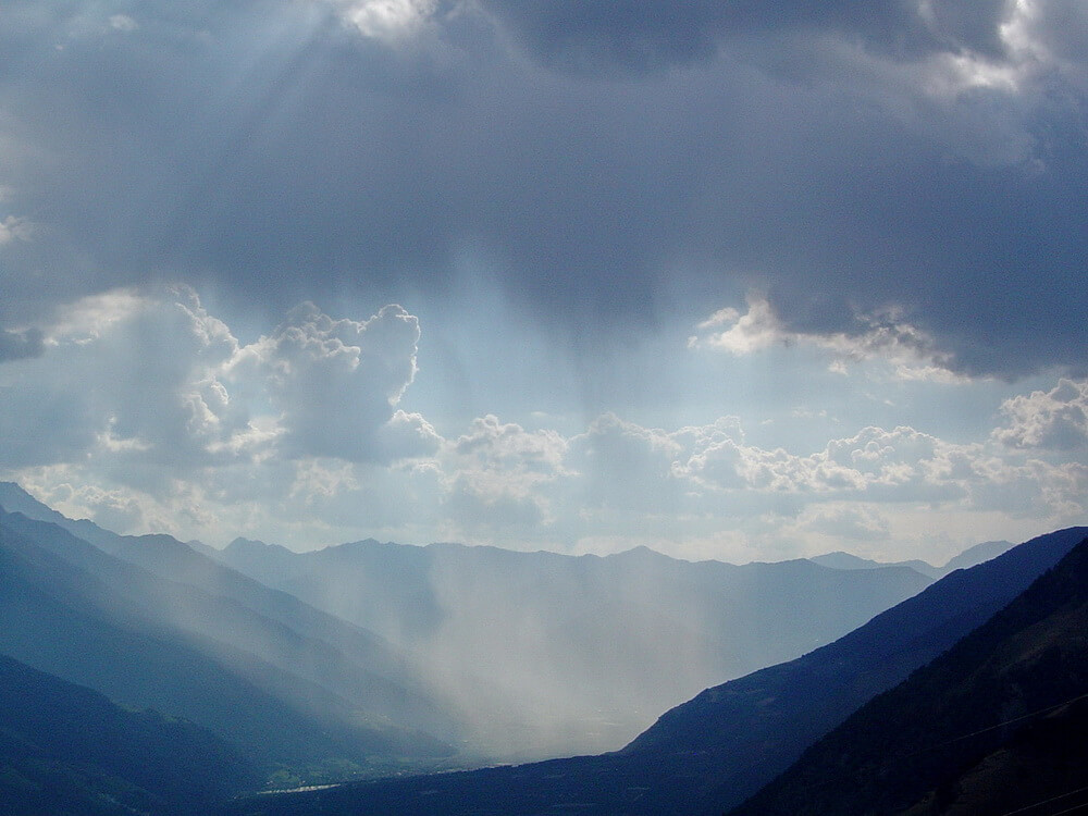 Das abendliche Beisammensein klingt aus mit dem atemberaubenden Blick vom Balkon eines unserer Zimmer. In der Gegend des Stilfser Jochs braut sich ein Gewitter zusammen. Es wetterleuchtet und wir sehen, wie die Wolken auf uns zu kommen. Schließlich erreicht uns in der einsetzenden Nacht die Wetterfront mit Blitz, Donner und einem Platzregen, den wir vergnügt von drinnen beobachten.