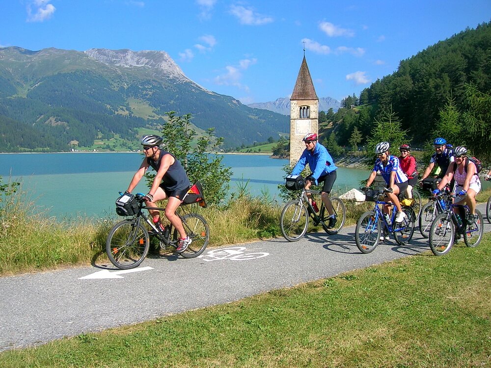 - Radweg am Reschensee entlang, weiter ins Vinschgau komplett auf Etsch-Radweg