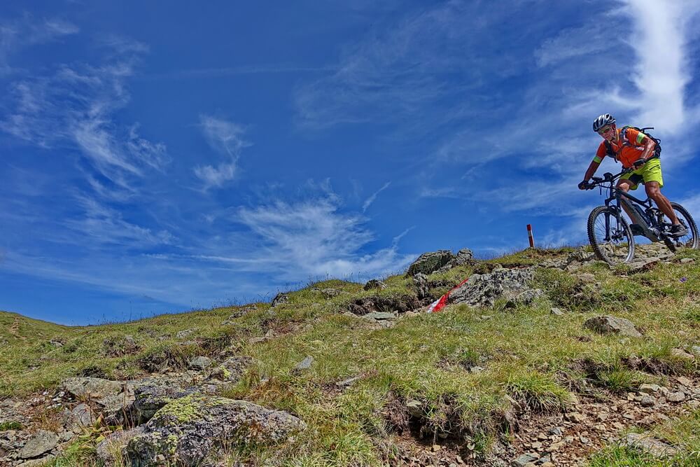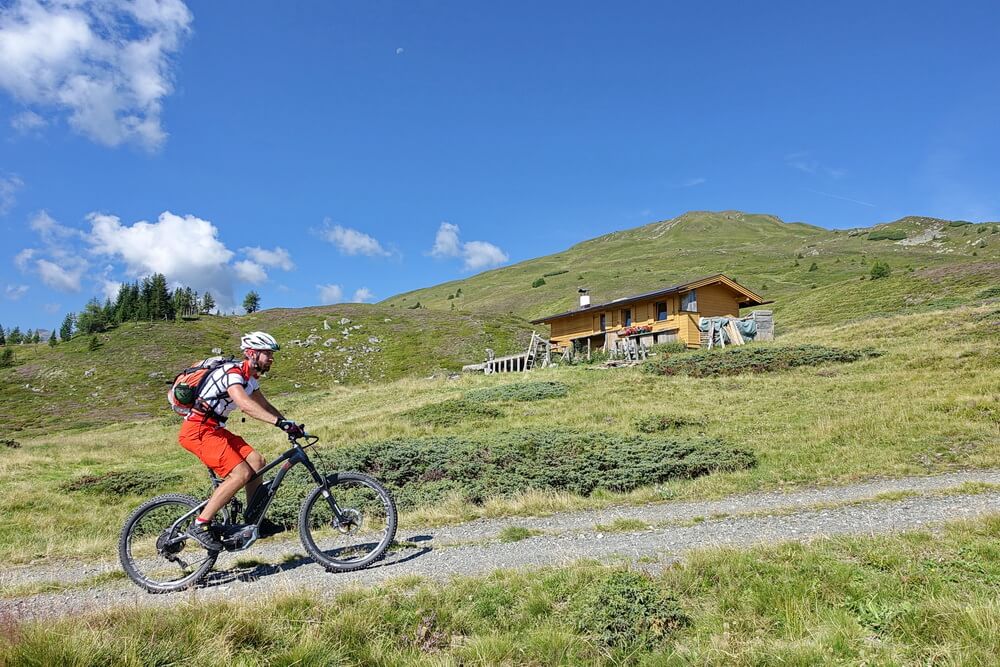 Dort machen wir Rast. Viel ist hier im Sommer nicht los, erzählt der Hüttenwirt. Der Wandertourismus kanalisiere sich im Wipptal auf das Stubaital, beklagt er. „Schuld“ daran seien die vielen Lifte dort. Wir haben unsere Aufstiegshilfen im Bike integriert und nutzen die Pause zum Nachladen der Akkus. Das wiederholen wir in Trins im Gschnitztal. Der kleine Ort befindet sich im Mittagsschlaf. Am Dorfbrunnen tanken wir Wasser nach.