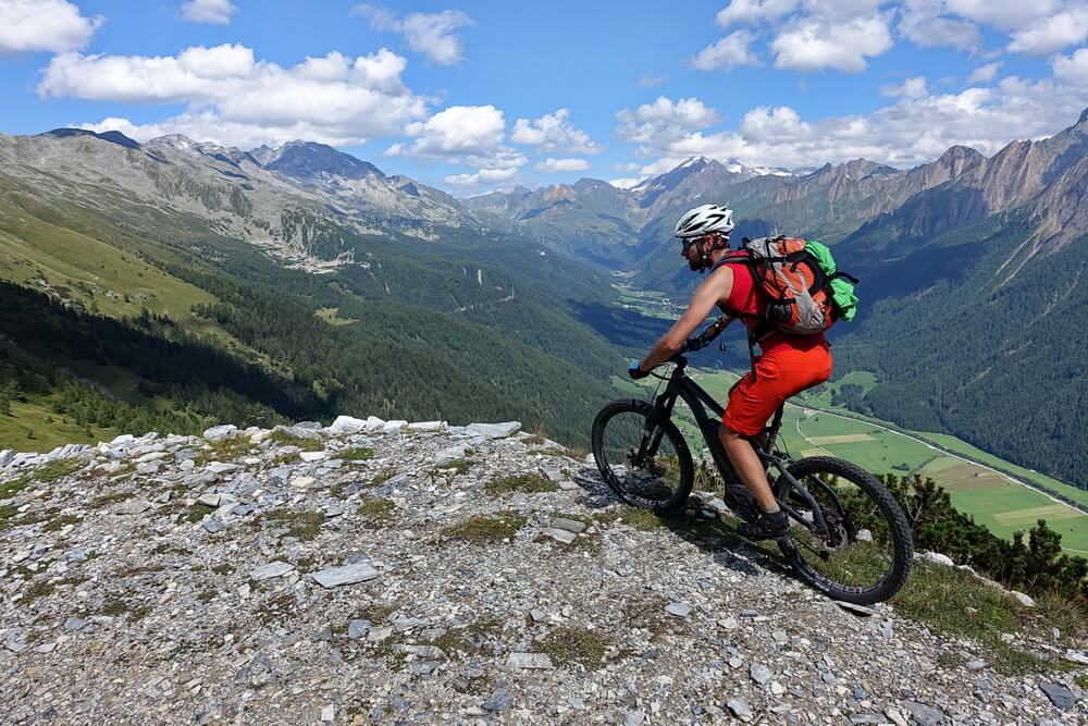 ab Fussendrass das Pfitschtal hinab über Tulfer nach Wiesen, dort über Schmuders hinauf zur Hühnerspielhütte, Schotterabfahrt nach Gossensass, dort Richtung Giggelberg und weiter auf Hauptroute
