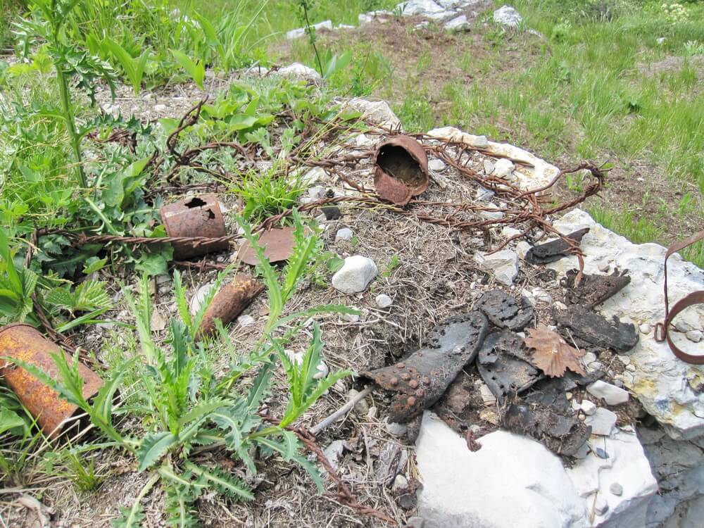 Ohne Vorwarnung wäre ich oder einer von uns vermutlich eingebrochen. Vorsichtig hangeln wir uns an der Gefahrenstelle vorbei und erreichen sicheres Gelände. Ich bedanke mich sehr bei dem Ehepaar. Sie erzählen mir, dass weiter unten noch zwei kleine Gerölllawinen auf dem Weg liegen, die aber zu Fuß passierbar sind. Noch mal gut gegangen, denken wir und weiter geht's. Urplötzlich taucht bei einem Tunnel wieder Straßenbelag auf. Wir umfahren ihn interessehalber auf dem alten Schotterweg und stehen so gleich vor einer imposanten Brücke, Format Fernstraße. Aus irgendwelchen unerfindlichen Gründen wurde dieses Straßenprojekt nicht zu Ende geführt. Uns ist es recht, so kommen wir recht bequem voran. In Matassone kann man noch die Überreste eines österreichischen Forts besichtigen. Viel ist nicht mehr zu sehen, am Monte Zugna wartet Monumentaleres auf uns.