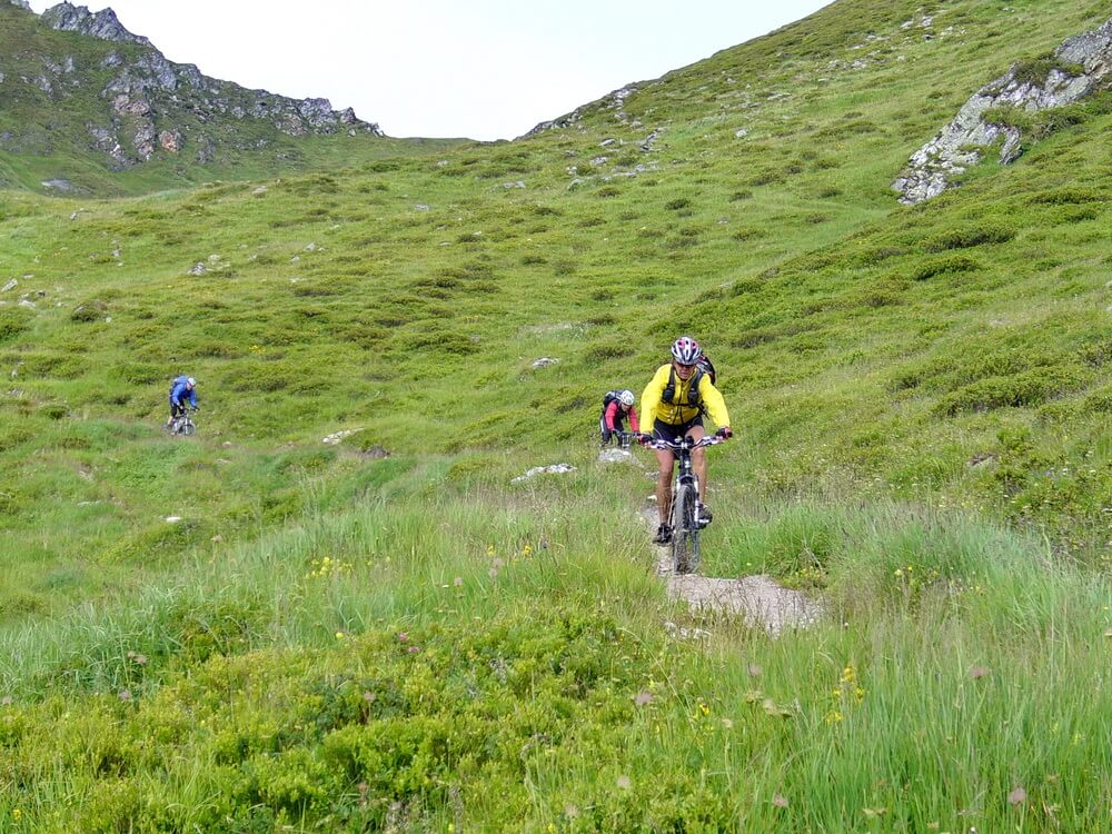 Die Abfahrt vom Tuxer Joch ins Schmirntal ist seit Jahr 2019 ein kombinierter Weg für Wanderer und Mountainbiker. Es ist ein komplett fahrbarer Traumtrail entstanden - Schwierigkeit: S0 mit einzelnen S1-Abschnitten. Bei der Trassierung wurden viele fahrbare Kurven geschaffen, die man ohne Hinterradversetzen meistern kann - siehe auch meinen Bericht zu Transalp Training