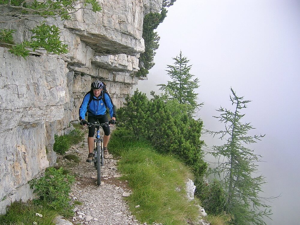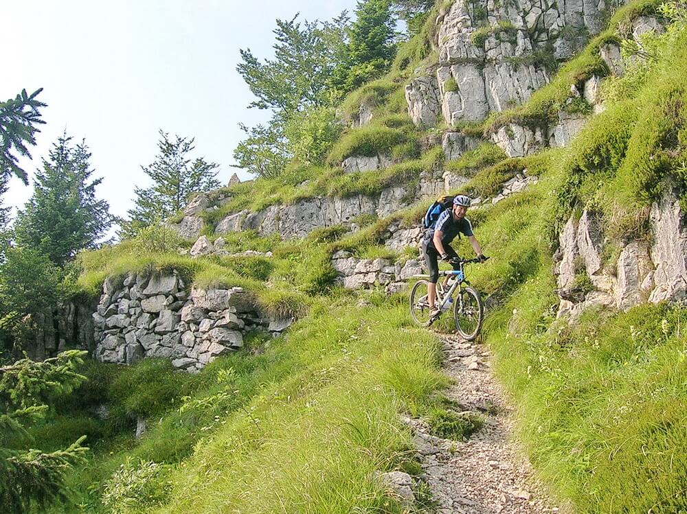| Monte Maggio | 82,6 | 1830 m | 17:20 | Gipfelkreuz aus Eisen, alte Stellungen besichtigen; Abfahrt ist eine Herausforderung für Fahrtechnikspezialisten, schmaler Singletrail mit Spitzkehren und verblockten Felspassagen: S2, Passagen bis S3 | 101 |