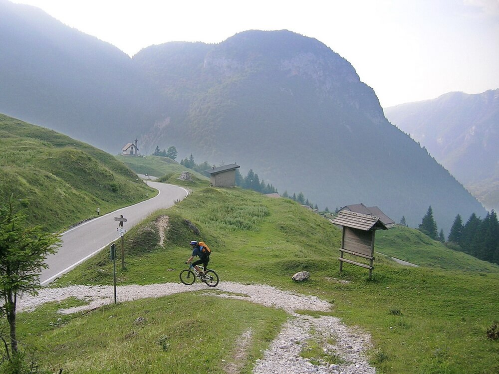Anschauliches Beispiel für eine ursprüngliche Rucksacktour, bei der mir "nur" die grobe Route vorschwebte. Alles weitere sollte sich von Tag zu Tag ergeben. Fixpunkte waren das Geiseljoch, der Monte Maggio und danach eine Übernachtung in der legendären Trattoria All'Alpino in Posina. Am folgenden und letzten Tag stand eigentlich noch der Pasubio auf dem Plan. Der musste ausfallen, wir uns in Posina schlichtweg überfressen hatten. Im Tourbericht zu den einzelnen Etappen finden sich Roadbooks, die ich aus den Angaben meines damaligen Radcomputers erstellen konnte. Interessant sind dabei die Zeitangaben. Damals bin ich noch ohne GPS gefahren - die Übersichtskarten habe ich aus meinen Aufzeichnungen und späteren Befahrungen von Teilstrecken nachvollzogen bzw. aufgezeichnet.