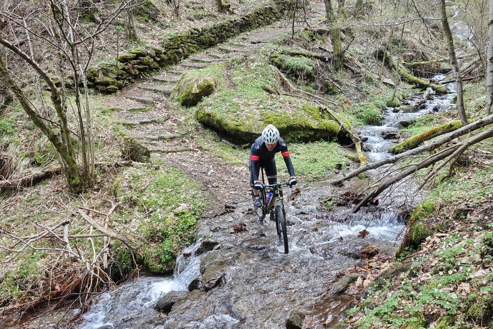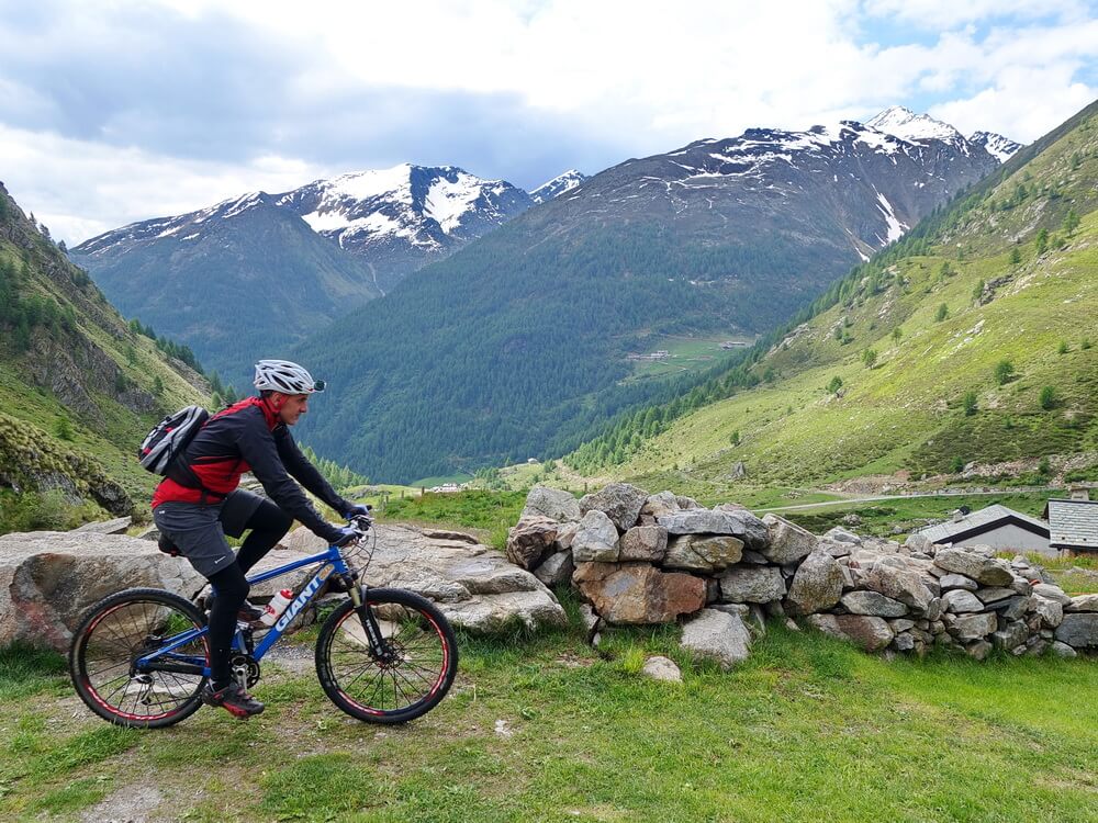 Der vierte Tag begann mit der bekannten Strecke über den Passo di Verva nach Eita. Der neue Bikeweg nach Fusiono war schön, aber etwas nass. Der Nachmittag nach Malghera war anstrengend, doch die schöne Sentiero Italia und Abfahrt ins Veltlin entschädigte uns dafür. Im Tal fuhren wir weiter bis nach Sernio (Albergo Valchiosa)