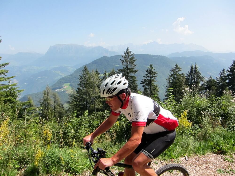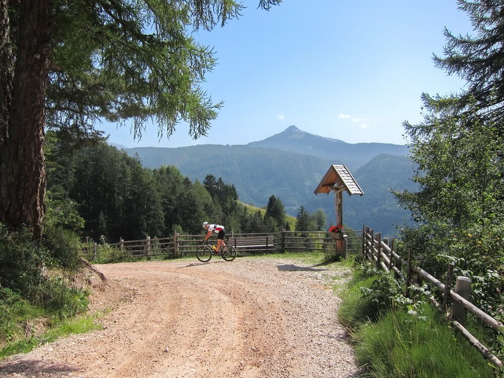 Als ich mit meiner Frau vor drei Wochen hier im Südtirol Urlaub machte, waren wir dort zu einem Tagesausflug. Ich hatte mein Mountainbike mit und wollte mir eine Inspiration holen. Auf der Karte identifizierte ich das Kugeljoch als mögliche Alternative. Gehört und gelesen hatte ich davon als Transalp-Übergang noch nichts. Also anschauen und dann entscheiden - Volltreffer. Ein Downhill vom Feinsten und dazu noch mit einer leichteren Schottervariante für den Fall der Fälle. Dirk ist begeistert und will am liebsten noch weiter mitfahren. Ich will heute aber noch über den Passo Sadole und damit die Lagorai-Kette durchqueren. Und von dort käme er nicht zurück zu seinem Urlaubsquartier. Also trennen wir uns in Cavalese, von wo aus er über San Lugano auf dem alten Bahntrassenweg wieder zurück nach Südtirol gelangt (siehe auch Transalp Karwendel-Brenner-Route, 5. Tag).