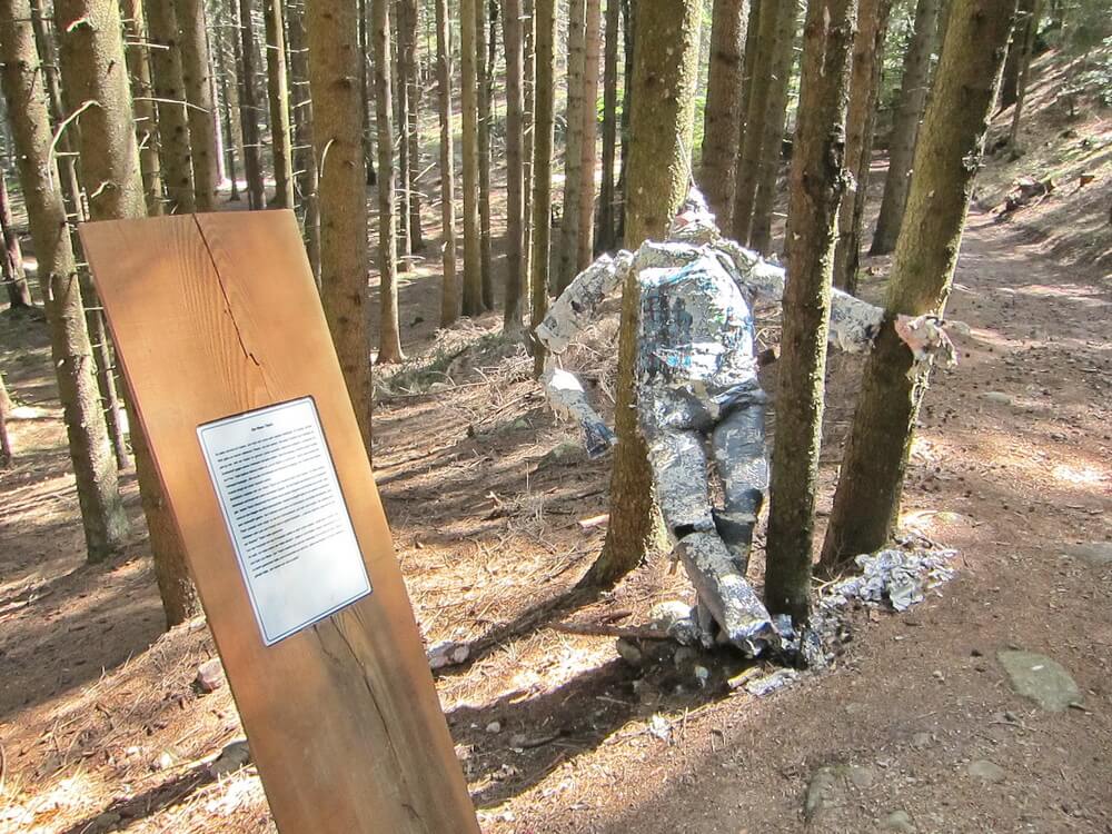 Die Ruinen alter militärischer Bauten aus vergangenen kriegerischen Zeiten haben schon viele Winter auf dem Buckel, so dass nur noch die Grundmauern zu erkennen sind. In dieser Einsamkeit frage ich mich zum wiederholten Male, was Militärs doch für bescheuerte Menschen sein müssen. Hier gibt es aber auch gar nichts zu verteidigen, weder heute noch früher. Selbst als Übergang eignete sich der Passo Sadole maximal als Schmugglerpfad. Dementsprechend stolpere ich zunächst ein paar Höhenmeter auf dem S2-Trail hinab (zur Erinnerung: ich allein auf Transalp + S2-Trail = Schiss). Dann muss ich mich zusammenreißen. Zwei italienische Maiden lassen ihr glockenhelles Lachen ertönen. Sie sammeln Heidelbeeren und ich will mich ihnen als Held präsentieren. Das gelingt knapp im nun fahrbareren Gelände (meine Schiebeübungen haben sie nicht gesehen). Wir werfen uns ein paar Redewendungen über den schönen Tag im allgemeinen und die Schönheit der Bergwelt im besonderen zu. Ich muss ihnen erklären, woher ich mit dem Gerät komme und wohin es mich noch führen soll. Da ertönt auch schon: Bravo, bravo! Das lässt sich nun leicht übersetzen. Mangels vergleichbarer anderer Anwesender denke ich mir, das die Anfeuerung mir gilt und ziehe mit einem überaus freundlichen Gruß weiter. Mit dem diesem Motivationsschub versehen fällt es mir leicht, bei der folgenden leichten Schotterabfahrt noch Ausschau nach einem Hauch von Trail zu halten, der mich am Ende stracks zu meinem Tagesziel führt, dem legendären Rifugio Refavaie. Hier habe ich vor langer Zeit schon einmal Station gemacht. Das war bei meiner Trans-Dolomiti im Jahre 2002 (Tourbericht im Archiv). Aus der Hütte ist inzwischen ein respektables Berghotel geworden. Der Forellenteich ist noch vorhanden. Keine Frage, was ich heute Abend esse.