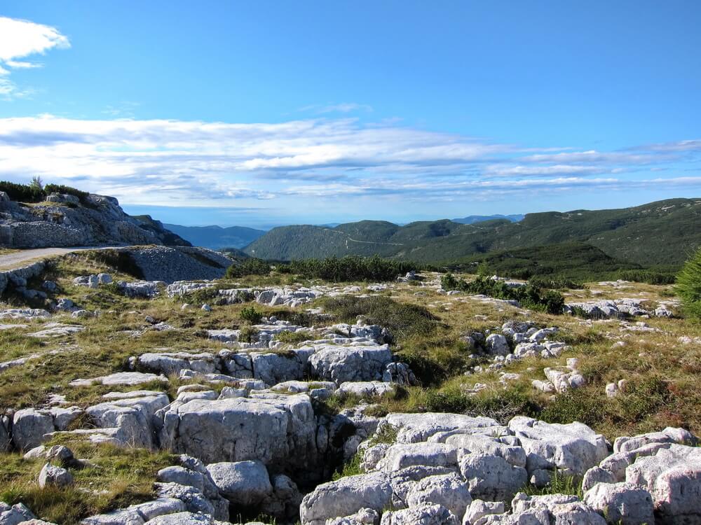 Die Bikestrecke nimmt aber auch jeden Schlenker mit. In der Nähe des Lago Lavarone habe ich dann die Faxen dicke. Den vorgeschlagenen Abstecher ins Tal schenke ich mir und steuere auf geradem Wege den Passo Sommo an. Die Gegend kenne ich nun wieder recht gut von vorherigen Touren. Ach, da ist ja die Bikestrecke "100 km dei Forti" wieder. Ich kann mich doch immer wieder auf meine Intuition verlassen. Da ich gut in der Zeit liege, will ich am Passo Sommo noch eine Rast machen - Pustekuchen, heute Ruhetag. OK, so ziehe ich auf dem schönen Höhenweg am Rif. Stella Italia vorbei durch bis zum Passo Coe.