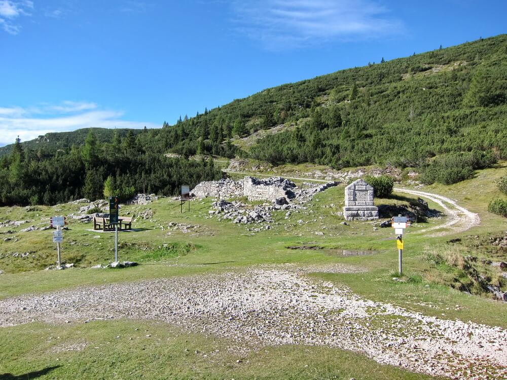 Ich bin bis hierher im wesentlichen der logischen Hauptroute über Bivio Italia, Portule, Larici und Forte Verle gefolgt. Nun stehen noch das Werk Lusern und das Forte Belvedere auf dem Plan. Dazu ist es recht hilfreich, dass hier oben eine Bikestrecke ausgeschildert ist - 100 km dei Forti (grob übersetzt: die 100 km Festungsstrecke). So finde ich relativ entspannt die Wege zum Forte Luserna und dessen Vorposten und auch zum Forte Belvedere. Alles sehr beeindruckende Überbleibsel aus vergangener Zeit.