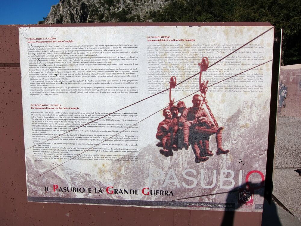 Ab Porte del Pasubio/Rifugio Papa die Strada degli Eroi hinab zum Passo Pian delle Fugazze und dann die Straße hinab nach Rovereto.