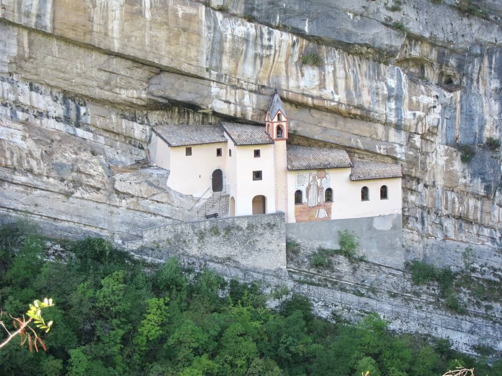 Ich liege gut in der Zeit, genieße das schöne Wetter und bin überrascht, wie schnell ich am Rifugio Lancia bin. Zeit für einen Kaffee. Bei der Abfahrt erkunde ich die diversen Schotteralternativen, die es im unteren Teil gibt. Damit kann man die ab Cheserle geteerte Zufahrtsstraße zum Rif. Lancia teilweise umgehen. Bei der gleißend im Sonnenlicht daliegenden Kirche Madonna delle Salette findet sich noch ein Hauch von Trail. Dann gibt es aber nur noch Gummi auf der Straße hinein nach Rovereto, wo mich brütende Hitze umfängt. Zum Glück beginnt kurz nach der Ortseinfahrt der Zubringer zum Radweg, der mich erst nach Mori und dann an den Gardasee bringt. Geschafft! Durst! Hefeweizen, Grappa! Prost!
